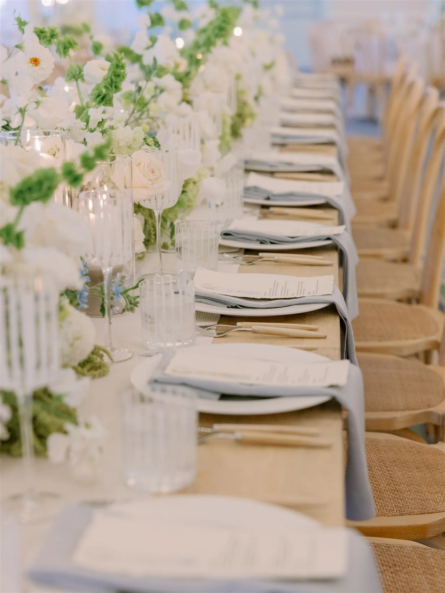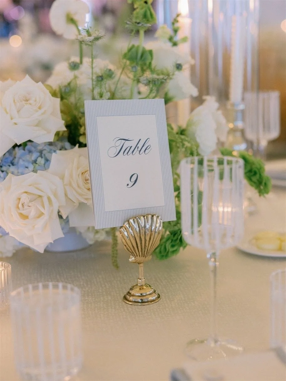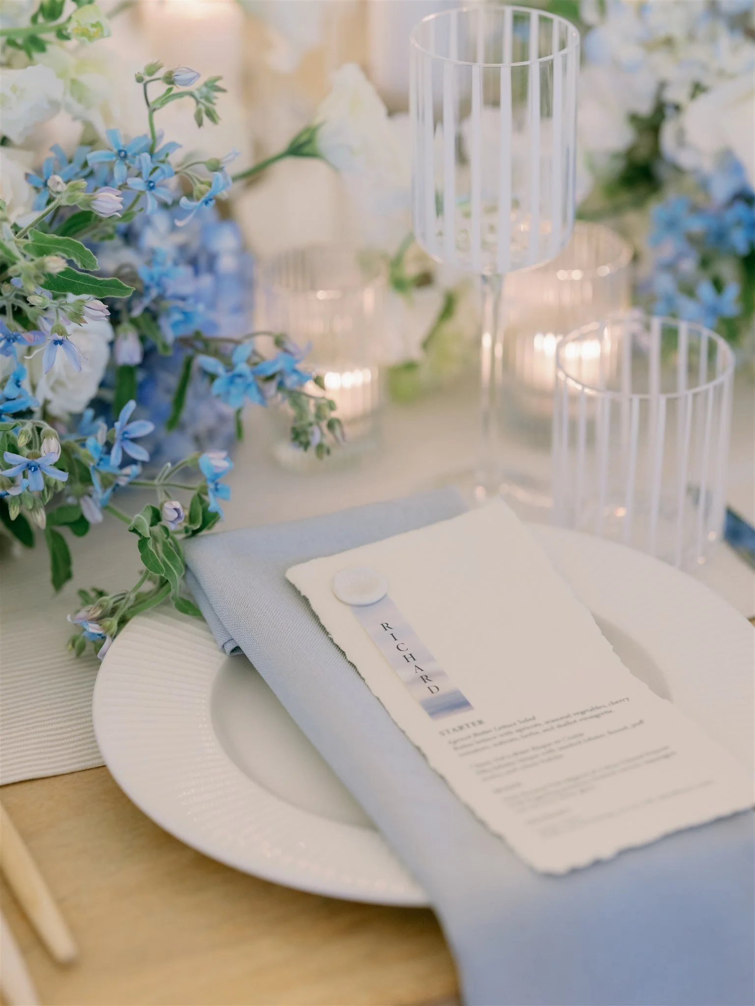 Soft blue hues, shell motifs, and tailored typography paid homage to the oceanfront setting, while tactile details like deckled edges, layered vellum wraps, and letterpress printing added dimension and romance. The result was a cohesive, elevated experience — effortlessly classic, with a fresh coastal twist.